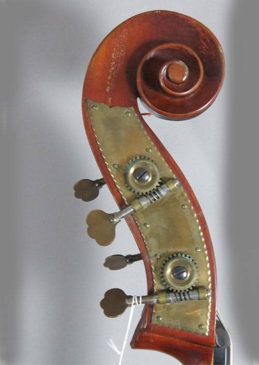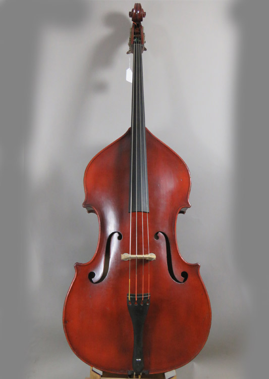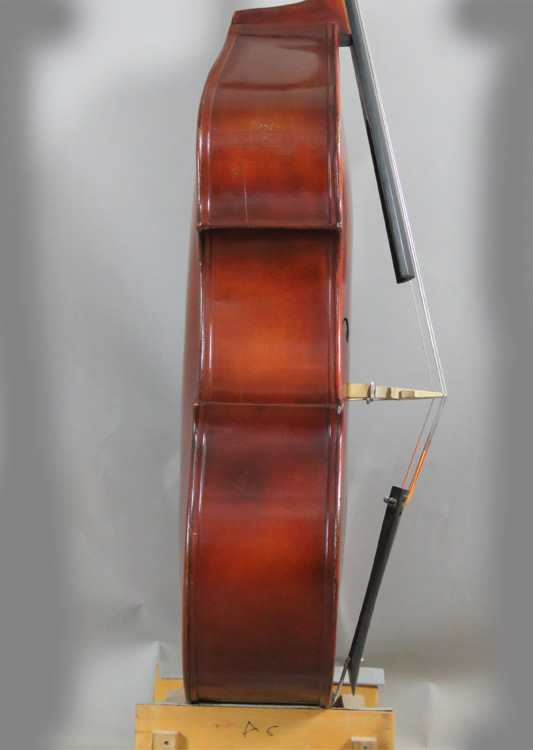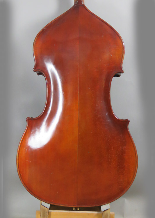 This is another in shop restoration that included minor crack repairs, new bassbar, fingerboard dress and complete Bass Cellar setup. Made from well figured beech and spruce and is now in excellent shape.