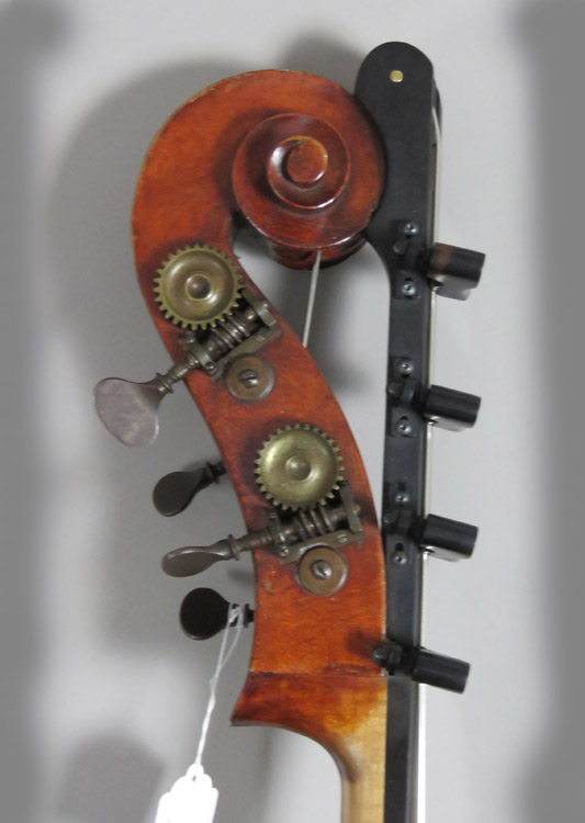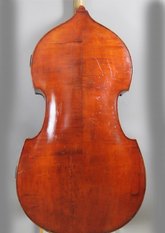 Very attractive and nicely flamed maple back and ribs. Original varnish is still intact and touchups blend seamlessly. It has the original tuners and a Bass Cellar completely adjustable full chromatic C extension.
